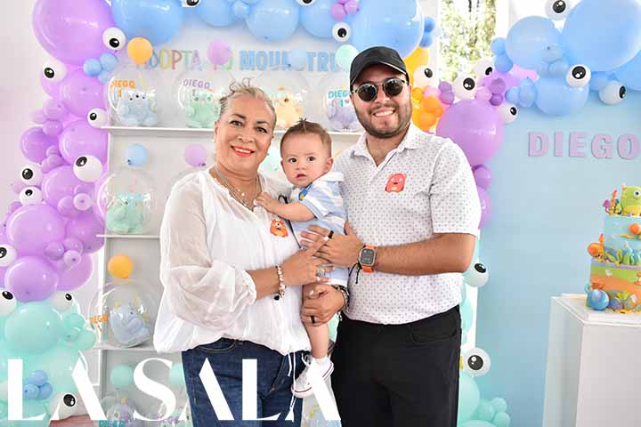 Con una tierna y colorida fiesta temática de monstruos, Diego Arcos celebró su primer cumpleaños en la Casa Club Russello, rodeado de 60 invitados entre familiares y amigos Su mamá, Daniela Arcos, junto con sus abuelos Ivonne y Jorge Arcos, se encargaron de organizar cada detalle para hacer de este día algo inolvidable. La decoración, a cargo de I Want It, con tonos azules, verdes y morados, llenó el espacio