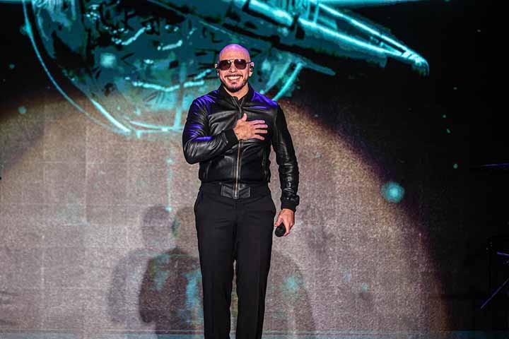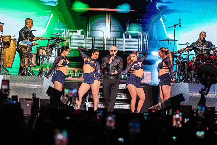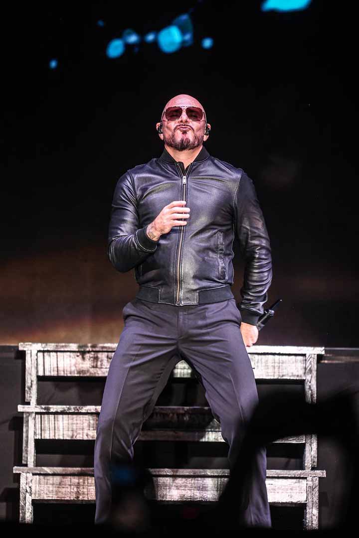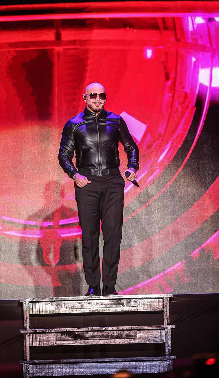 Enfundado en un traje negro, el artista estadounidense salió al escenario a interpretar sus éxitos como “Don’t stop the party”, “Hotel Room Service”, “Rain Over me”, “Gasolina”, “mami”, entre otras tantas.