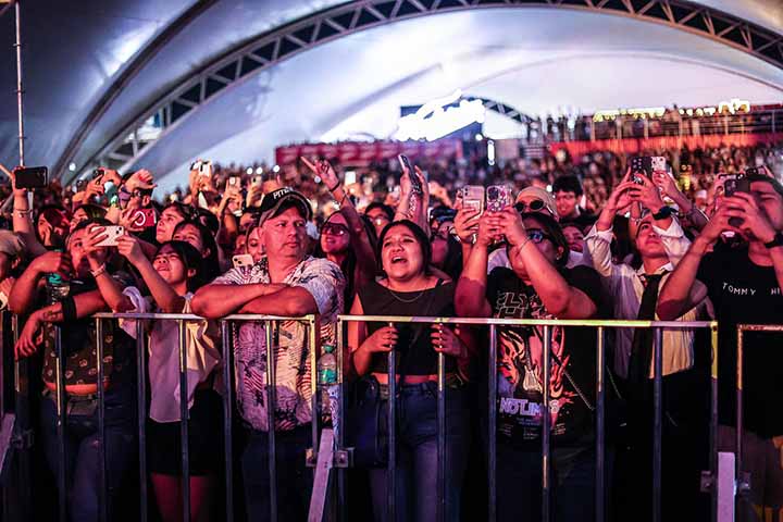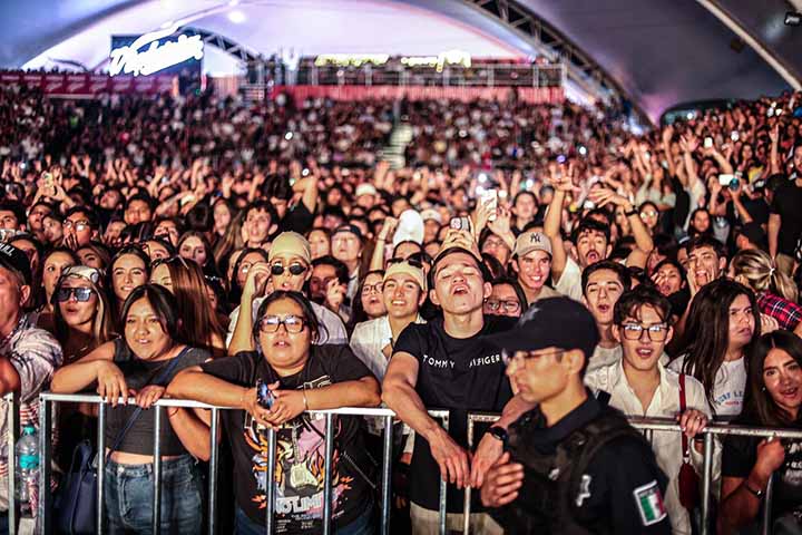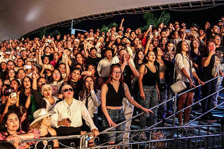 En un intervalo expresó su orgullo por estar en la Feria de San Marcos, logrando los gritos de entusiasmo del público que no dejaban de bailar y brincar.